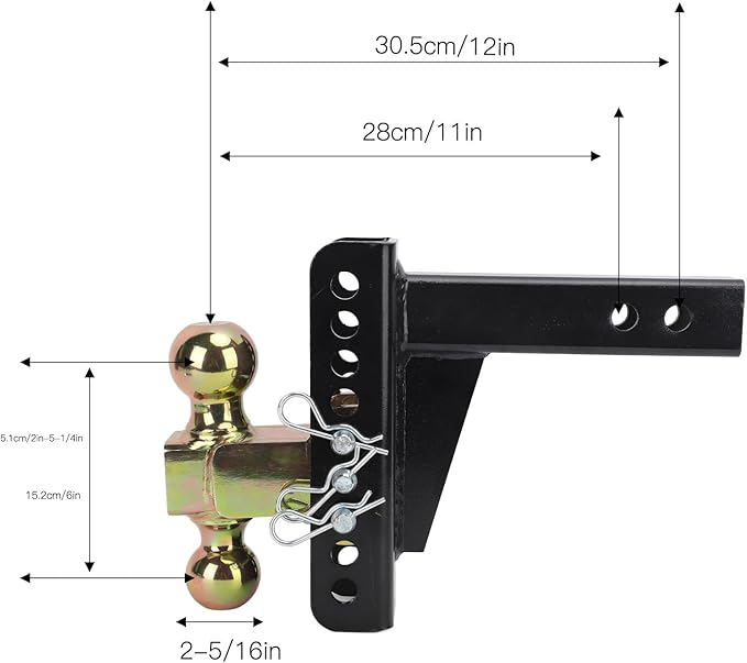కొలతలు: 2in రిసీవర్, 6in డ్రాప్, 2 మరియు 2-5/16 అంగుళాల బాల్, లోడ్ 14000 ఎల్బిలు