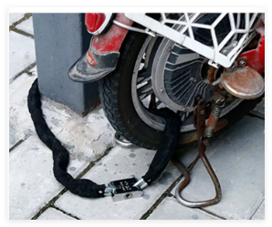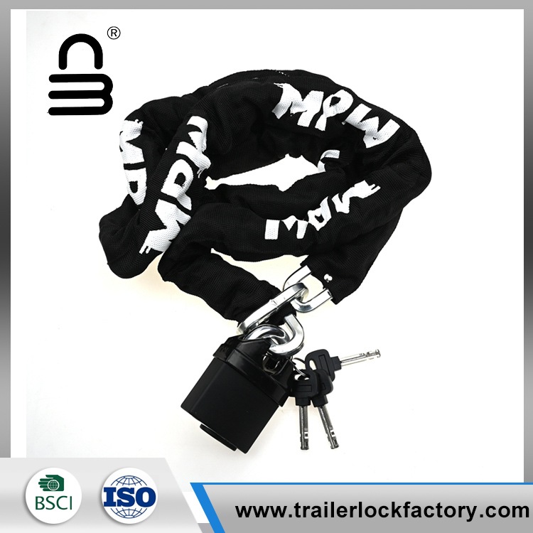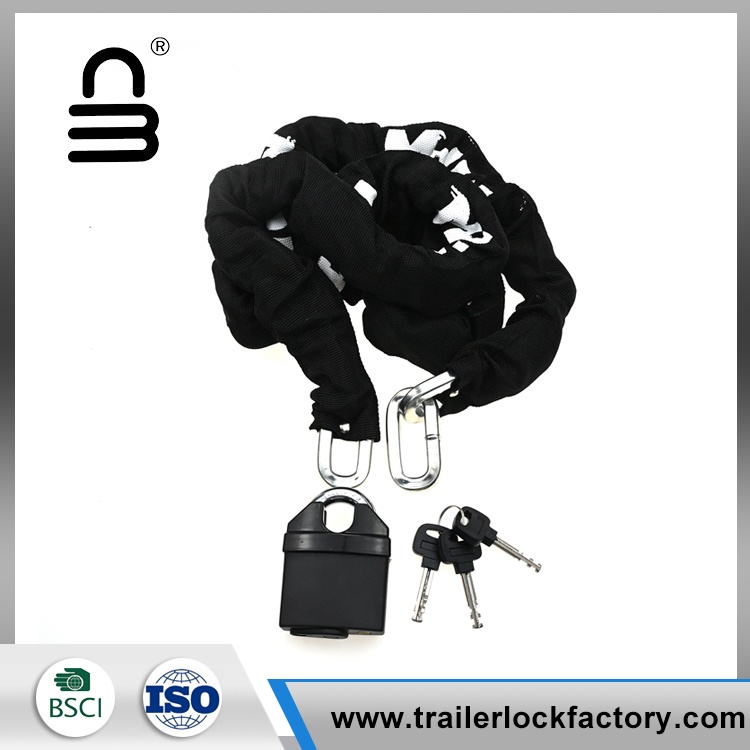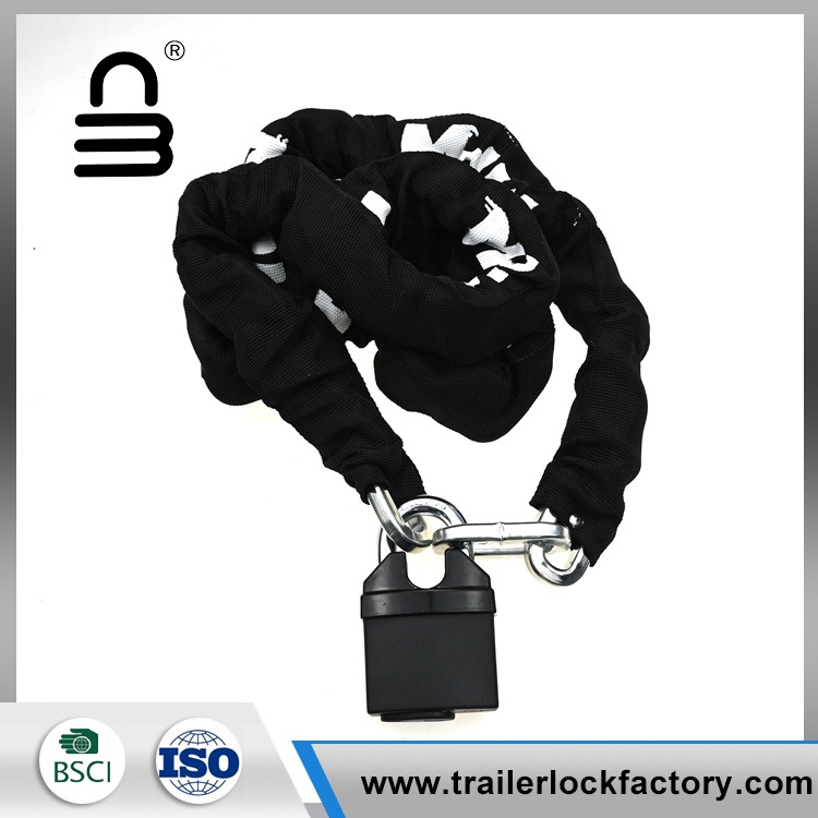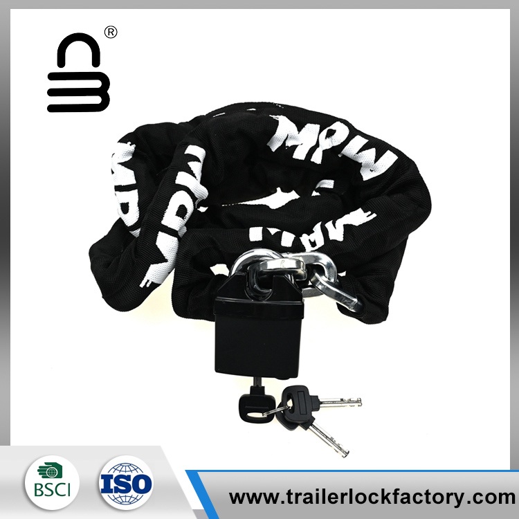 గీతలు నివారించడానికి మరియు దీర్ఘాయువును పెంచడానికి, బైక్ చైన్ లాక్ కఠినమైన, దుస్తులు-నిరోధక ఫాబ్రిక్ స్లీవ్తో కప్పబడి ఉంటుంది. అదనపు భద్రత కోసం, బైక్ చైన్ లాక్ U- ఆకారపు లాకింగ్ మెకానిజంతో అమర్చబడి ఉంటుంది, దీనిని U-LOCK హుక్స్ అని కూడా పిలుస్తారు, ఇది బందు యొక్క నమ్మకమైన మరియు సురక్షితమైన పద్ధతిని అందిస్తుంది.